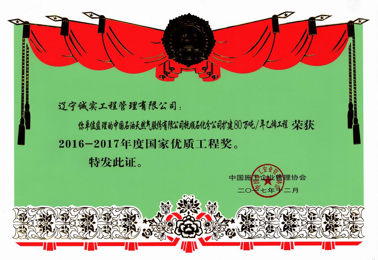 2016-2017年國家優(yōu)質(zhì)工程獎(撫順石化擴(kuò)建)